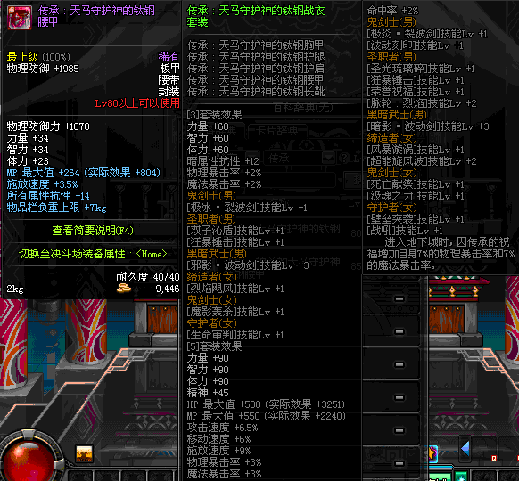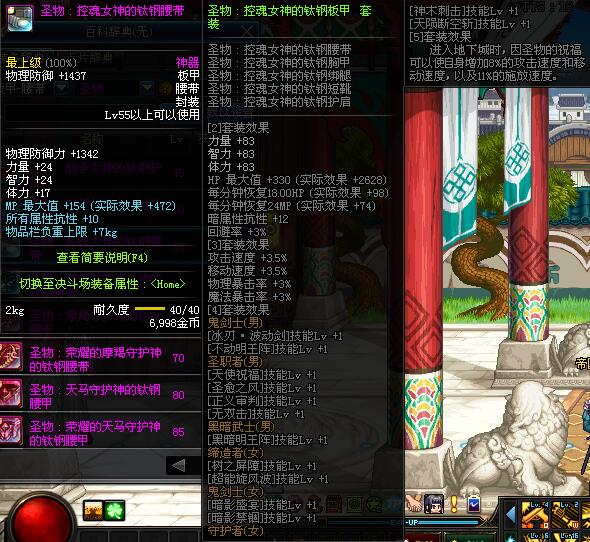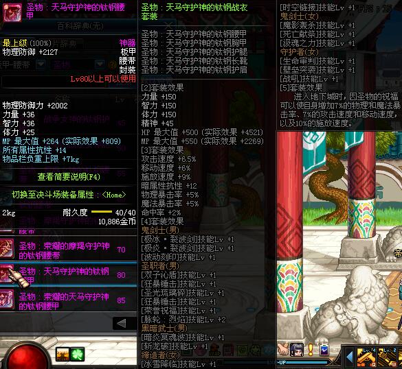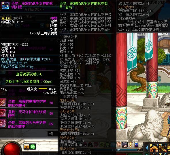 | 80 | 圣物 :天马守护神的钛钢腰甲 | *Lv80~86普通地下城怪物掉落 | ||