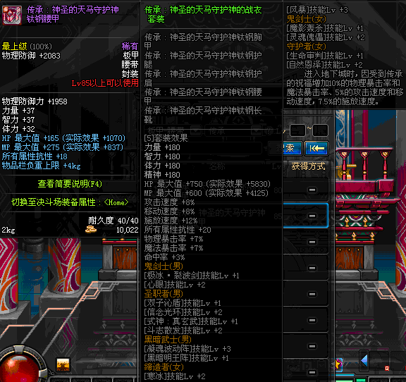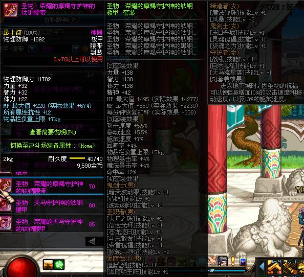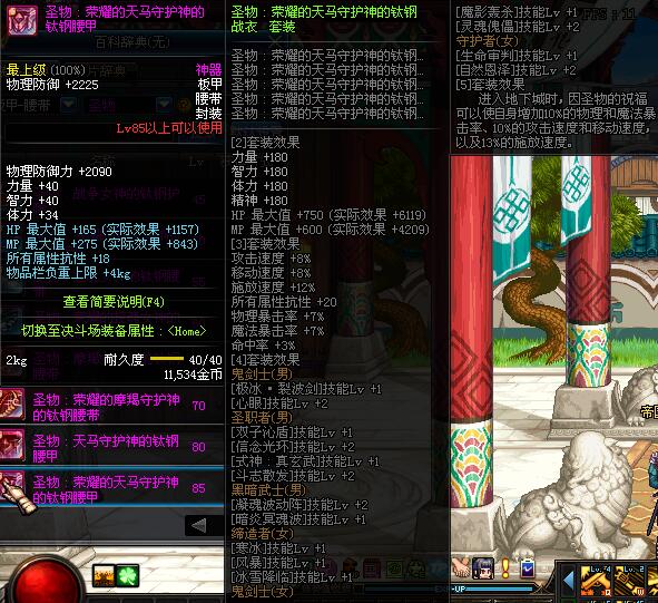 | 85 | 圣物 :荣耀的天马守护神的钛钢腰甲 | *Lv85~91普通地下城怪物掉落 | ||