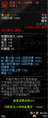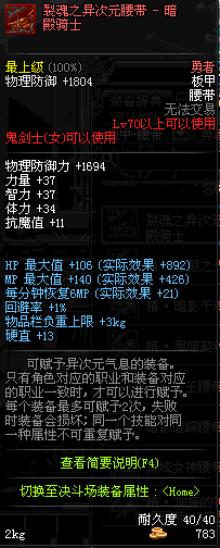 | 70 | 裂魂之异次元腰带 - 暗殿骑士 | |||