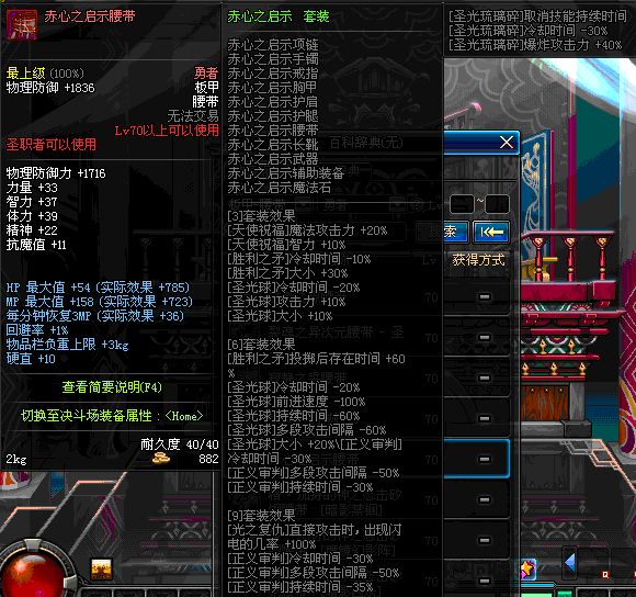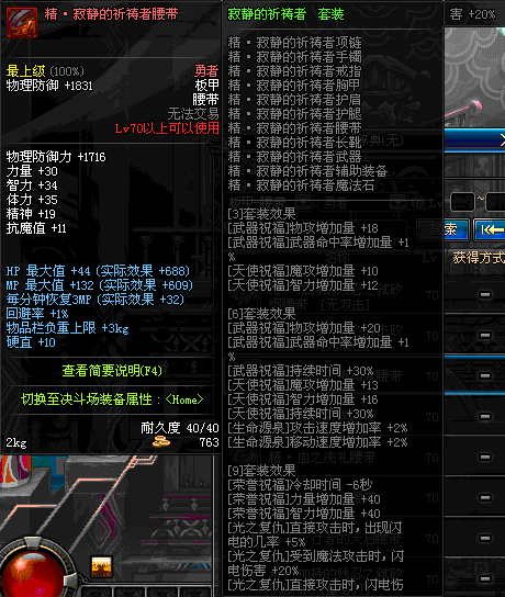 | 70 | 圣物 :荣耀的摩羯守护神的钛钢腰带 | *Lv70~76普通地下城怪物掉落 |