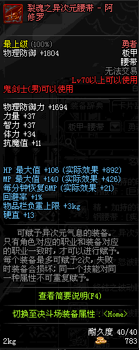 | 辅助装备: | 全职业 鬼剑士 女鬼剑 女格斗 男格斗 神枪手 女枪手 魔法师 男法师 圣职者 暗夜使者 守护者 |