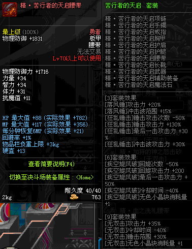 | 76 | 真 · 尼尔巴斯的钛钢腰带 | *设计图(70LV以上普通地下城 登场的NPC加百利 出售) *尼尔巴斯的钛钢腰带 → 用远古神器装备进化书升级(NPC船长鲁特 出售) |