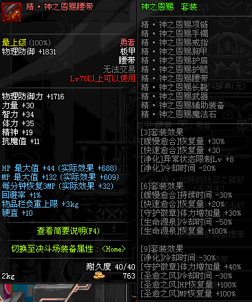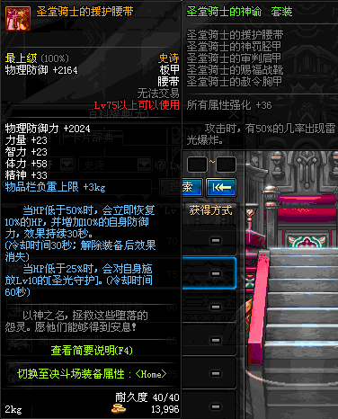 | 75 | 圣堂骑士的援护腰带 | *Lv74~81深渊地下城怪物掉落 | 圣堂骑士的神谕 套装 | |