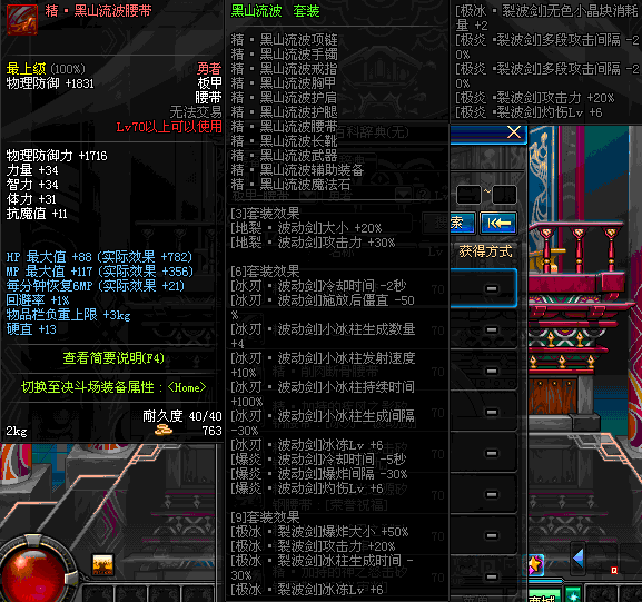 | 80 | 真 · 黑色瘟疫之狼眼腰带 | *设计图(70LV以上普通地下城 登场的NPC加百利 出售) *黑色瘟疫之狼眼腰带 → 用远古神器装备进化书升级(NPC船长鲁特 出售) |
