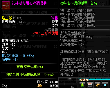 | 鬼剑士 | 神枪手 | 格斗家 | 魔法师 | 圣职者 | 暗夜使者 | 布甲 | 皮甲 | 重甲 | 轻甲 | 板甲 | 饰品 |