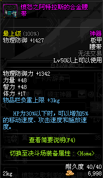 | 50 | 愤怒之阿特拉斯的合金腰带 | *歌利亚 掉落(暮色之城) *在NPC敏泰的物品店购买(阿拉德陨石×174) |