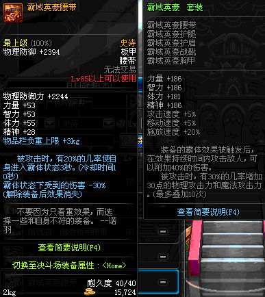 | 85 | 霸域英豪腰带 | *Lv84~91深渊地下城怪物掉落 | 霸域英豪 套装 | |