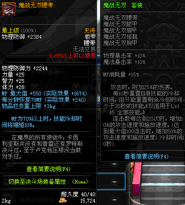| 85 | 魔战无双腰带 | *Lv84~91深渊地下城怪物掉落 | 魔战无双 套装 | |