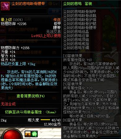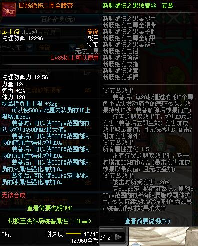 | 85 | 断肠绝伤之黑金腰带 | 昨日之巴斯顿 掉落 (在远古地下城里出没。) *从NPC鲁特的物品店出售的[断肠绝伤防具礼盒]中获得 |