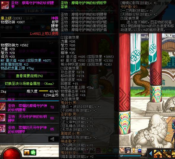 | 65 | 圣物 :摩羯守护神的钛钢腰带 | *Lv65~71普通地下城怪物掉落 |