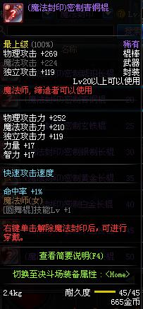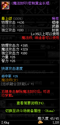 | 35 | (魔法封印)密制黄金长棍 | *Lv34~41普通地下城怪物掉落 |