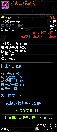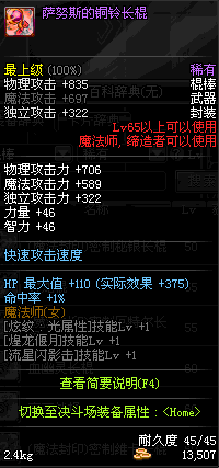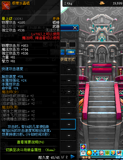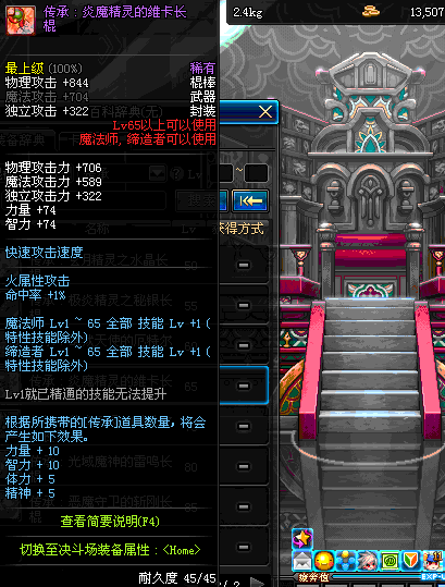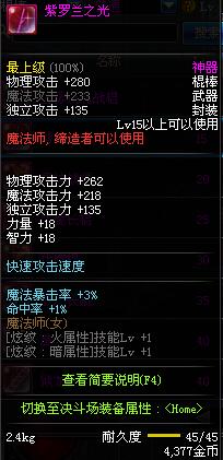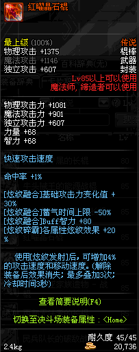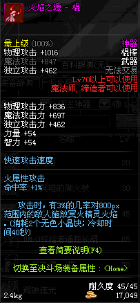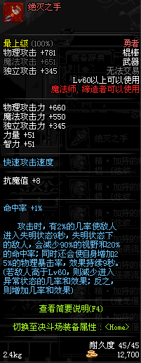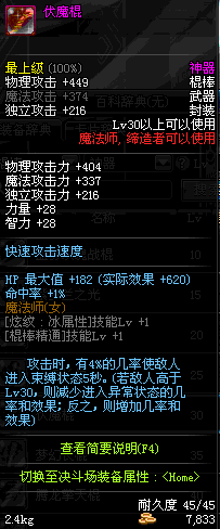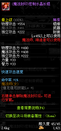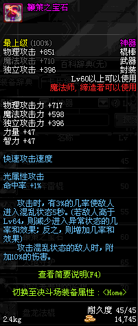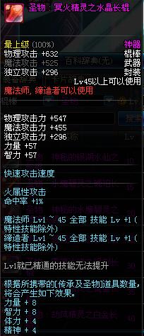 | 45 | 圣物 : 冥火精灵之水晶长棍 | *Lv45~51普通地下城怪物掉落 |