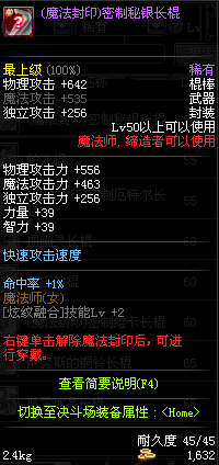 | 45 | (魔法封印)密制水晶长棍 | *Lv45~51普通地下城怪物掉落 *完成[罗斯特的破绽]任务 *使用Lv45~51怪物掉落的设计图进行制作 |