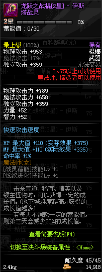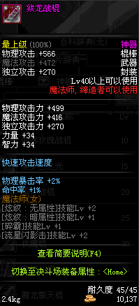 | 40 | 狱龙战棍 | *Lv39~46普通地下城怪物掉落 *在加百利的神秘商店购买 |