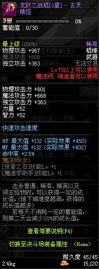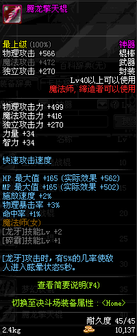 | 40 | 腾龙擎天棍 | *Lv39~46普通地下城怪物掉落 *在加百利的神秘商店购买 |