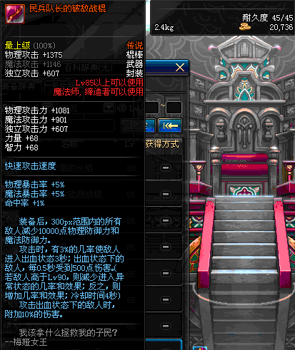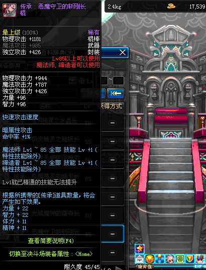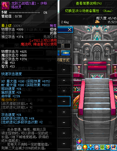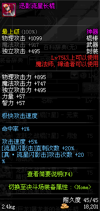 | 75 | 迅影流星长棍 | *Lv75~81普通地下城怪物掉落 *在加百利的神秘商店购买 |