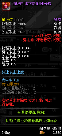 | 85 | (魔法封印)密制斩刚长棍 | *Lv85~91普通地下城怪物掉落 *完成[黑色迷雾]任务 |