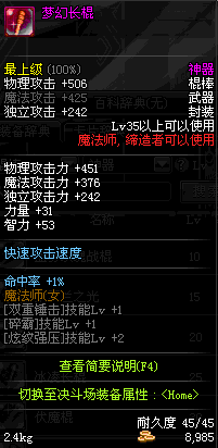 | 35 | 梦幻长棍 | *Lv34~41普通地下城怪物掉落 *在加百利的神秘商店购买 |