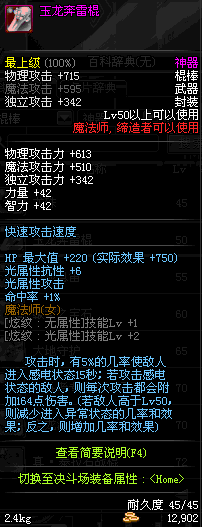 | 50 | 玉龙奔雷棍 | *Lv50~56普通地下城怪物掉落 *在加百利的神秘商店购买 |