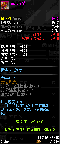 | 70 | 盘龙法棍 | *Lv70~76普通地下城怪物掉落 *在加百利的神秘商店购买 |