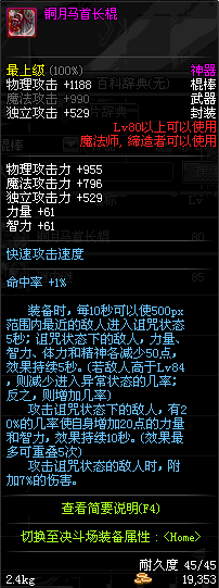 | 80 | 铜月马首长棍 | *Lv80~86普通地下城怪物掉落 *在加百利的神秘商店购买 |