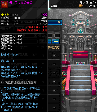 | 40 | 圣物 : 劫风精灵之白金长棍 | *Lv39~46普通地下城怪物掉落 |