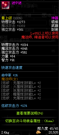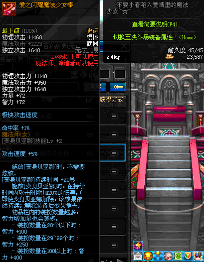 | 85 | 爱之闪耀魔法少女棒 | *Lv84~91深渊地下城怪物掉落 *攻坚队完成安徒恩团队模式的[消灭安徒恩]任务时,获得的奖励。 |