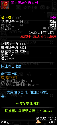 | 30 | 第六英雄的御火杖 | *御火者博 掉落(英雄冢) *在NPC克伦特的物品店购买(阿拉德陨石×105) |