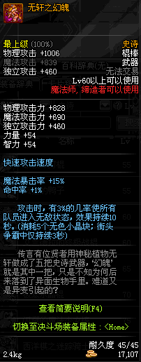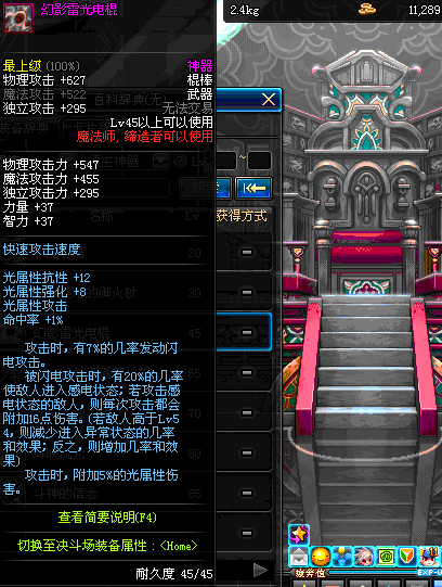 | 45 | 幻影雷光电棍 | *落雷凯诺 掉落(地下城: 冰刺庭院) *在NPC敏泰的物品店购买(阿拉德陨石×240) |