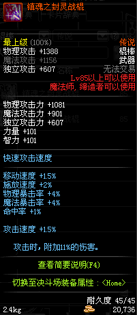 | 85 | 镇魂之封灵战棍 | *时空之门地区 - 吟游诗人艾丽丝 出售 (镇魂之石×100) *购买镇魂武器礼盒(低级镇魂之石×140) |