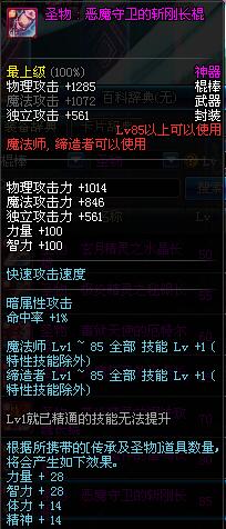 | 85 | 圣物 : 恶魔守卫的斩刚长棍 | *Lv85~91普通地下城怪物掉落 | ||