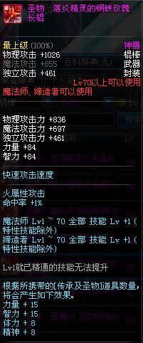| 70 | 圣物 : 落炎精灵的钢铁玫瑰长棍 | *Lv70~76普通地下城怪物掉落 |