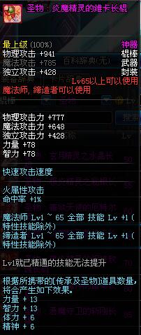 | 65 | 圣物 : 炎魔精灵的维卡长棍 | *Lv65~71普通地下城怪物掉落 |