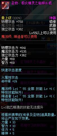 | 55 | 圣物 : 极炎精灵之秘银长棍 | *Lv53~61普通地下城怪物掉落 |
