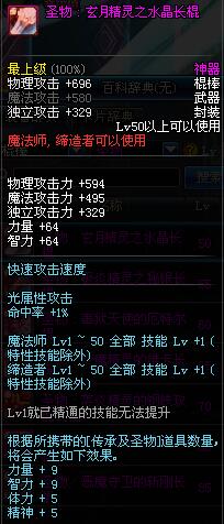 | 50 | 圣物 : 玄月精灵之水晶长棍 | *Lv50~56普通地下城怪物掉落 |