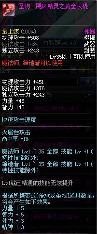 | 35 | 圣物 : 飓风精灵之黄金长棍 | *Lv34~41普通地下城怪物掉落 |