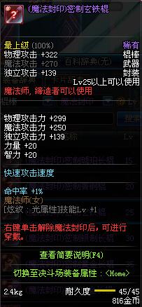 | 25 | (魔法封印)密制玄铁棍 | *Lv24~31普通地下城怪物掉落 *在NPC阿尔伯特·伯恩斯坦的物品店购买 *完成[帝国的险恶用心]任务 *使用Lv24~31怪物掉落的设计图进行制作 |