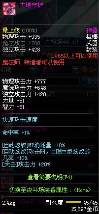 | 65 | 大地守护 | *Lv65~71普通地下城怪物掉落 *在加百利的神秘商店购买 |