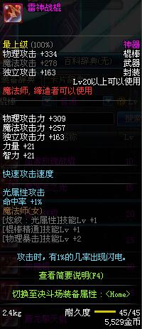 | 20 | 雷神战棍 | *Lv19~26普通地下城怪物掉落 *在加百利的神秘商店购买 |