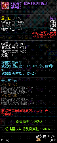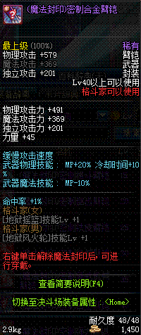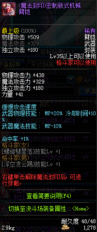 | 35 | (魔法封印)密制新式机械臂铠 | *Lv34~41普通地下城怪物掉落 |