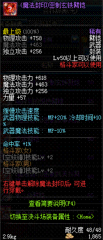 | 50 | (魔法封印)密制玄铁臂铠 | *Lv50~56普通地下城怪物掉落 *完成[黑色噩梦投影出来的世界]任务 *使用Lv50~56怪物掉落的设计图进行制作 |