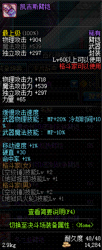 | 60 | OP臂铠 | *Lv58~66普通地下城怪物掉落 *在加百利的神秘商店购买 |