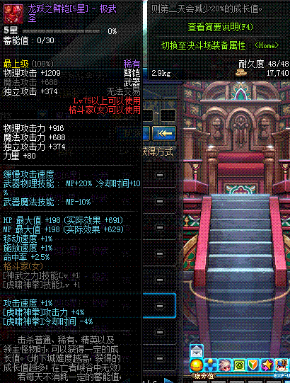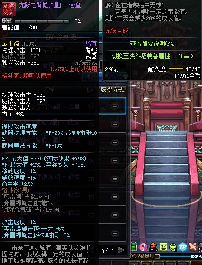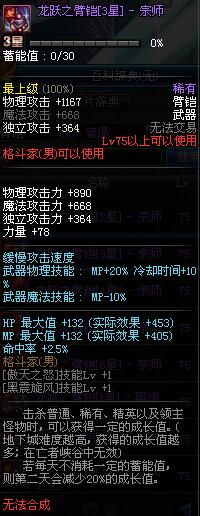 | 75 | 龙跃之臂铠[3星] - 宗师 | *完成二次觉醒任务后可以从NPC小铁柱处获得此道具。 | ||