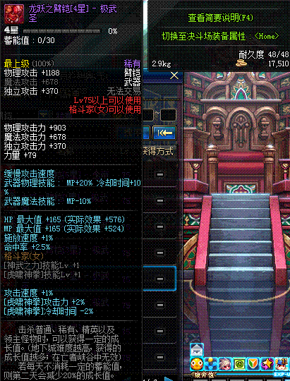 | 75 | 龙跃之臂铠[2星] - 极武皇 | *完成二次觉醒任务后可以从NPC小铁柱处获得此道具。 | ||