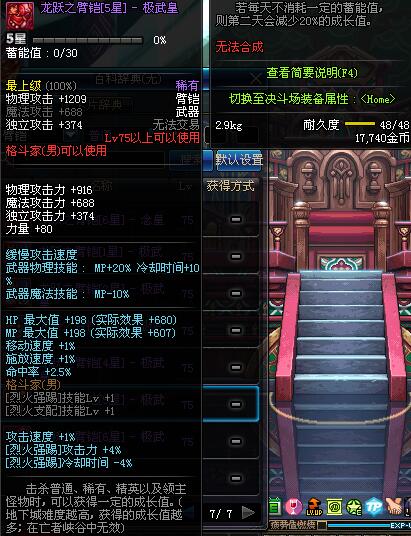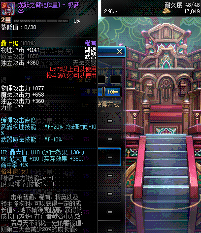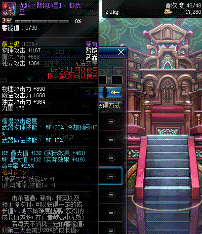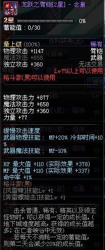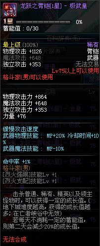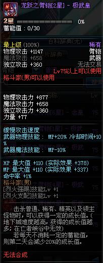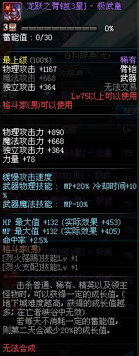 | 75 | 龙跃之臂铠[3星] - 极武圣 | *完成二次觉醒任务后可以从NPC小铁柱处获得此道具。 | ||