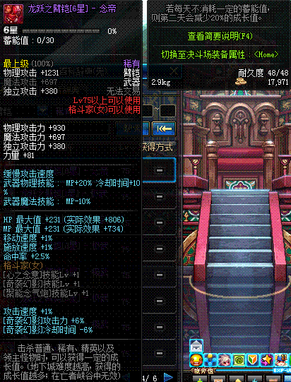 | 75 | 龙跃之臂铠[6星] - 念帝 | *完成二次觉醒任务后可以从NPC小铁柱处获得此道具。 | ||