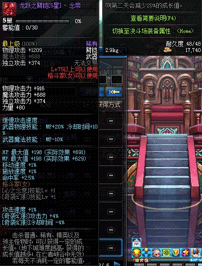 | 75 | 龙跃之臂铠[3星] - 念帝 | *完成二次觉醒任务后可以从NPC小铁柱处获得此道具。 | ||