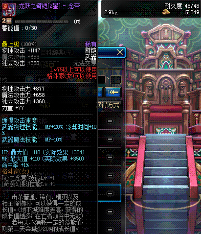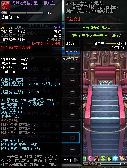 | 75 | 龙跃之臂铠[3星] - 极武皇 | *完成二次觉醒任务后可以从NPC小铁柱处获得此道具。 | ||