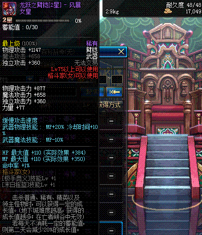 | 75 | 龙跃之臂铠[3星] - 风暴女皇 | *完成二次觉醒任务后可以从NPC小铁柱处获得此道具。 | ||