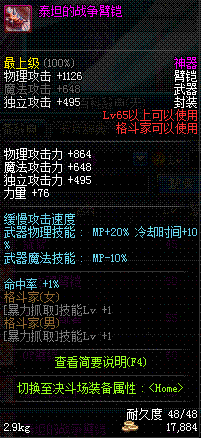 | 65 | 泰坦的战争臂铠 | *Lv65~71普通地下城怪物掉落 *在加百利的神秘商店购买 |
